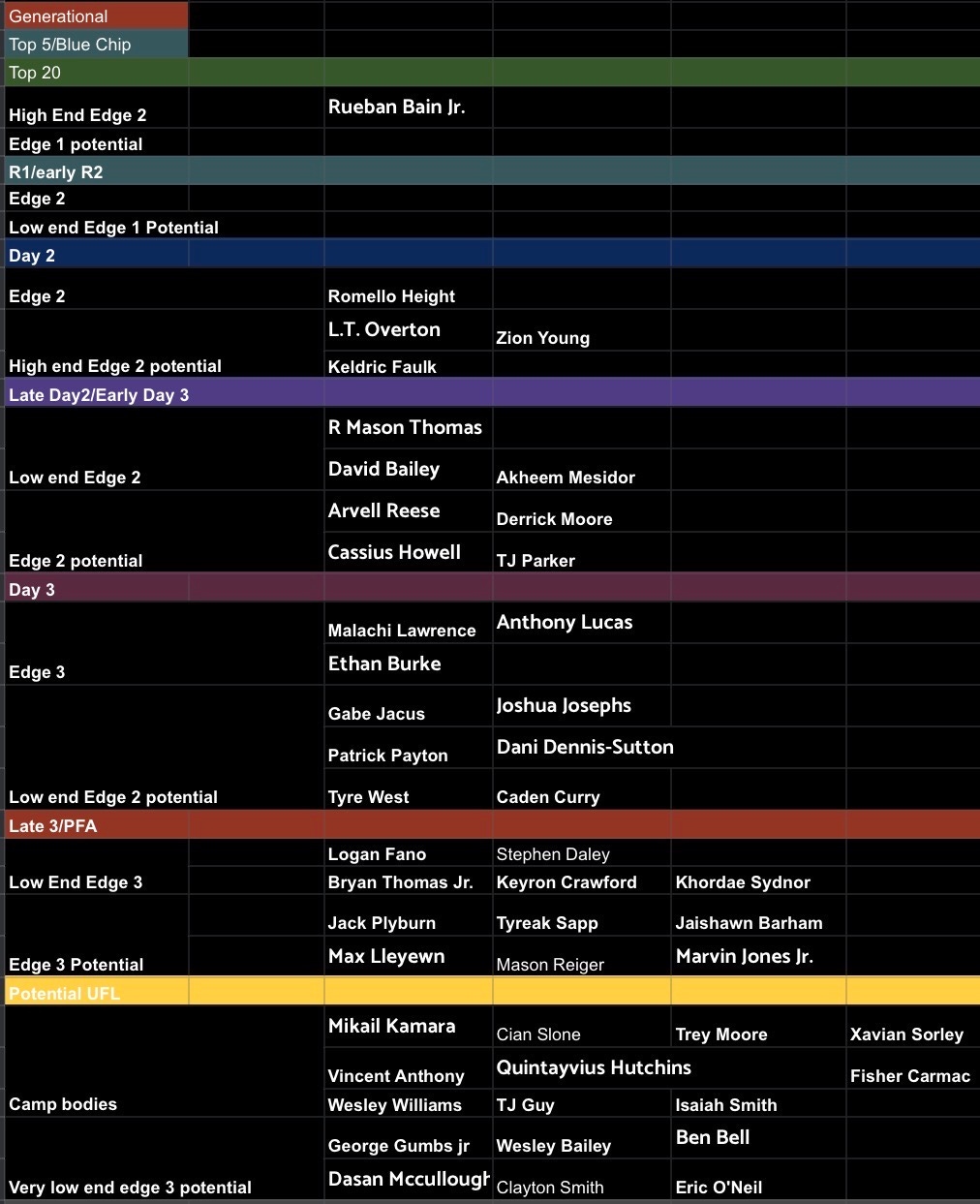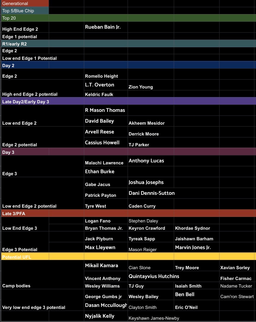 R1/Early R2 = edge 2 with low end edge 1 potential, Laiati Latu, Dallas Turner, Myles Murphy